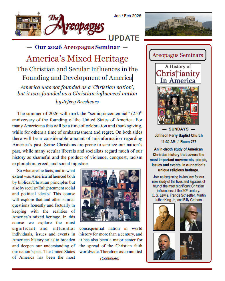 Believers didn’t choose to live in an America that has become post-Christian, but to paraphrase Tolkien’s Gandalf, that was not for us to decide. All we have to decide is what to do with the time that is given us. If we are going to work successfully to redeem the time, we first have to understand it. That’s why the Areopagus is so vital to the life of the local church in the Atlanta area. It calls Christians out of our complacency, and teaches us how to think well about the relationship among faith, history, culture, and the permanent things. If Christ’s people are going to endure, even thrive, in the coming darkness, we will need to gather around lighthouses like the Areopagus, to be enlightened by truth and warmed by fellowship.